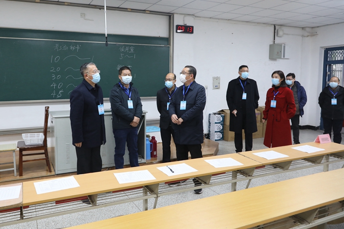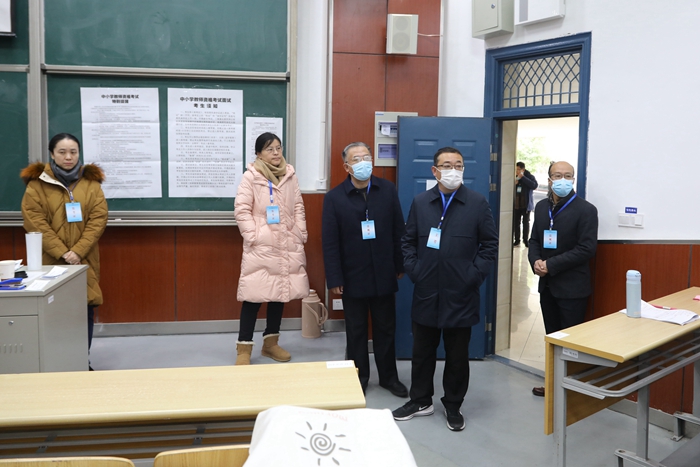 本次考试在疫情防控常态化下进行。学校高度重视,成立以贝绍轶为组长的工作领导小组,切实加强组织领导。考前,贝绍轶主持召开了工作协调会,检查了候考室、抽题室、备课室和面试室,听取了教务处等部门就考试组织、考务培训、考场环境布置、疫情防控与应急处理措施等方面的工作汇报,详细了解面试试题保密、考务纪律、技术支持等情况。1月7日下午,学校在图书馆南报告厅召开面试考官动员会及培训会,贝绍轶要求考官提高政治站位,增强责任意识;严格面试规则,严守考试纪律;坚持评判标准,提高面试能力。