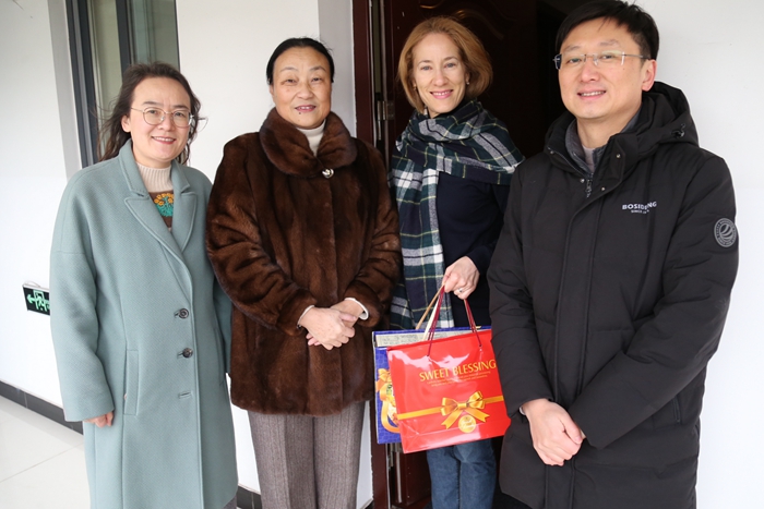 在外教公寓,蒋心亚代表学校向外籍教师致以节日的问候并送上新年礼物,祝福老师们工作顺利,春节愉快。