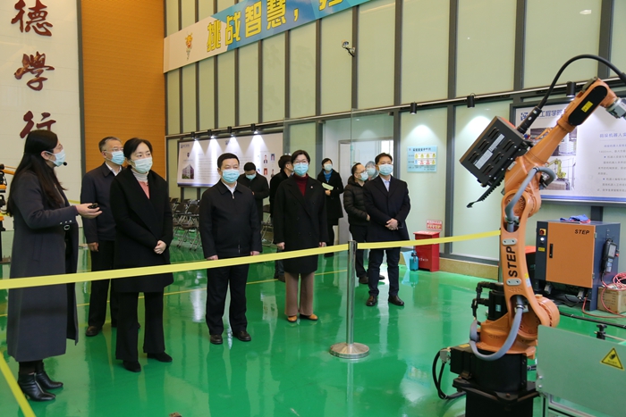 在现场察看我校常州市再制造重点实验室、机器人实验室、省重点材料分析和加工实验室等,详细了解我校人才培养、学科建设、校企合作等情况后,盛蕾对我校近年来取得的办学成效给予充分肯定,对我校在常州市产业发展中作出的积极贡献表示感谢。