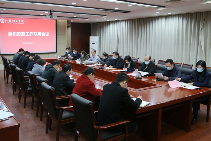3月1日上午,我校在厚德楼220会议室召开2022年第一季度意识形态工作联席会议。校党委副书记汤建石,校意识形态工作联席会议单位相关负责人出席会议。会议由校党委常委、宣传部部长基国林主持。