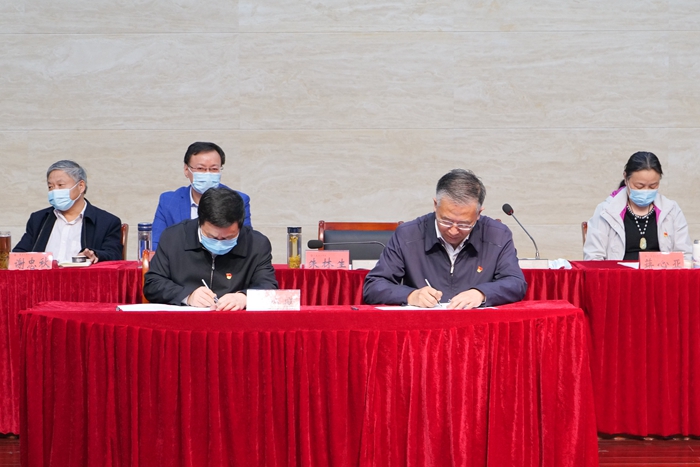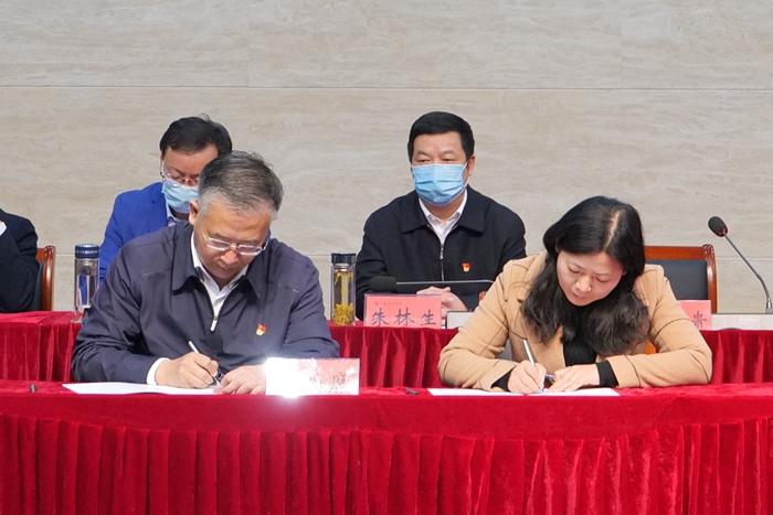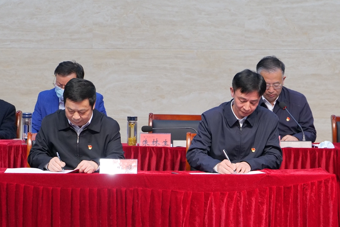 会上,党委书记朱林生与校领导班子成员签订了《全面从严治党责任书》或《廉政建设责任书》;党委副书记、校长崔景贵与其联系单位的党组织负责人签订了《全面从严治党责任书》。