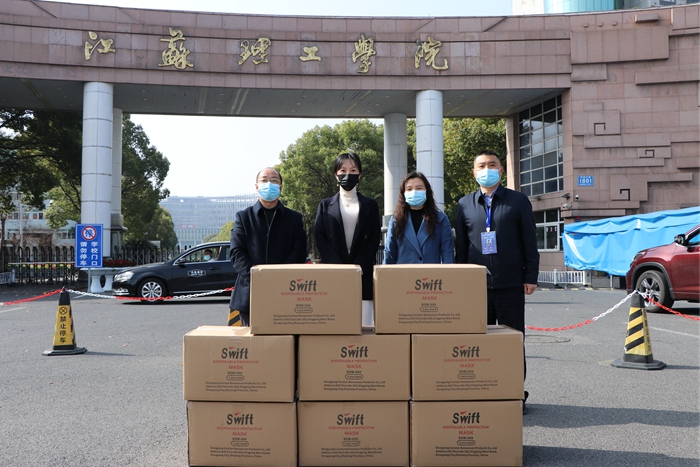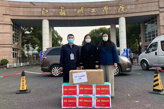 3月24日下午,常州市政协副主席、民革常州市委主委、常州市司法局局长张加林一行代表民革常州市委向我校捐赠了一批价值近6万元的防疫物资。校党委书记朱林生,校党委副书记汤建石,校党委常委、统战部部长俞亚萍,校民革支部和后勤保障处相关人员参加捐赠仪式。