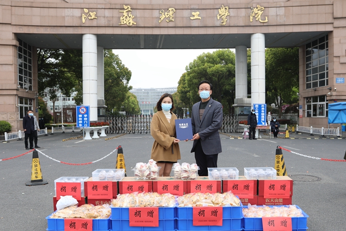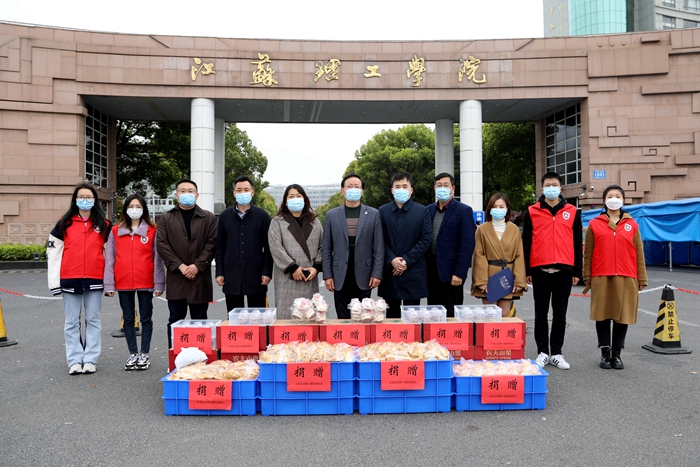 3月31日上午,武进区湖塘小蜗家蛋糕店向我校捐赠一批蛋糕、面包以及矿泉水,助力学校疫情防控工作。校党委副书记汤建石,小蜗家蛋糕店负责人承旭莲,我校校城融合工作办公室、团委、保卫处、后勤保障处、校教育发展基金会相关人员及学生志愿者代表参加了捐赠仪式。