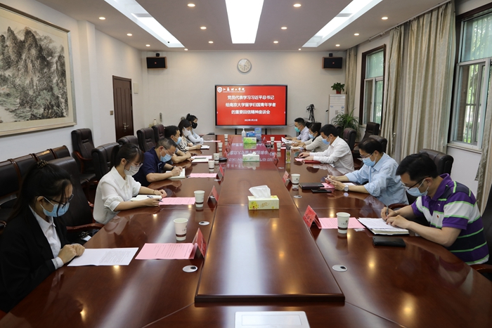近日,习近平总书记给南京大学的留学归国青年学者回信,勉励归国青年学者为全面建设社会主义现代化国家、实现中华民族伟大复兴的中国梦积极贡献智慧和力量。5月25日下午,我校在正德楼第二会议室召开党员代表学习贯彻习近平总书记给南京大学留学归国青年学者的重要回信精神座谈会,深入学习贯彻习近平总书记重要回信精神,党务部门、群团组织、基层党组织负责人,辅导员、青年学子代表等与会党员纷纷表示,要以习近平总书记给南京大学留学归国青年学者的重要回信精神为指引,努力奋斗,为实现我国高水平科技自立自强贡献青春力量。会议由党委宣传部副部长、新闻中心副主任张羽程主持。