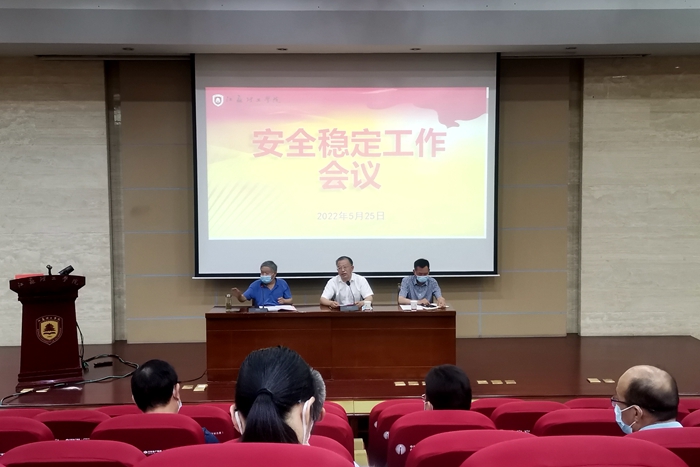 为深入贯彻落实习近平总书记关于安全稳定的重要指示精神,全面落实好党中央“疫情要防住、经济要稳住、发展要安全”重大要求,深刻吸取武进“5·24”瓶装液化气泄漏爆炸事故教训,5月25日下午,我校在图书馆南报告厅召开学校安全稳定工作会议,校党委副书记、校长崔景贵,副校长谢忠秋,各二级学院书记、部分党政机关负责人、直属单位及校管企业负责人等参加会议。