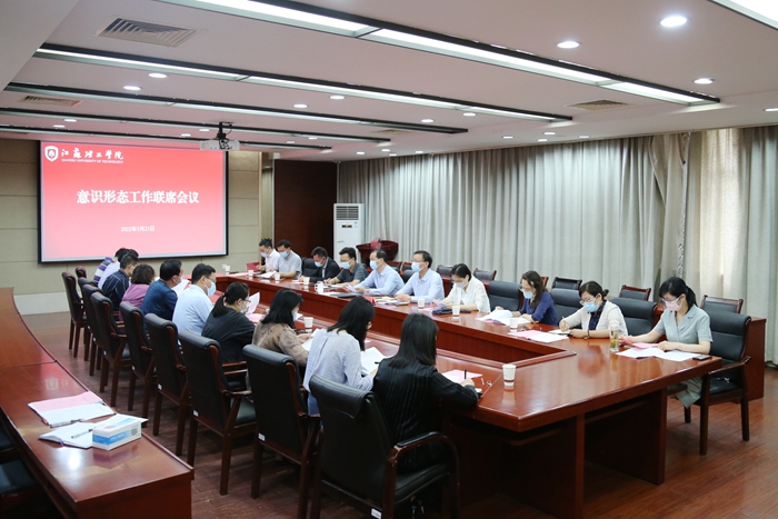 汤建石作总结讲话。他指出,高校是意识形态工作的前沿阵地,肩负着为党育人、为国育才的重要使命。各单位、各部门一是要提高认识,把准意识形态工作新要求。要紧扣主线,学习宣传贯彻习近平新时代中国特色社会主义思想;举旗定向,持之以恒推进理论武装走深走实;凝心铸魂,持之以恒推动思政工作质量提升;常态管理,持之以恒筑牢意识形态安全防线;融合发展,持之以恒巩固壮大主流思想舆论;守正创新,持之以恒涵养厚植大学文化底蕴。二是要优化路径,高质量推进意识形态工作。要坚决扛起政治责任、持之以恒守正创新、全面汇聚工作合力,全力守好学校意识形态领域安全,统筹校园疫情防控和学校高质量发展,奋力答好疫情防控“加试题”和事业发展“必答题”,以实际行动迎接党的二十大胜利召开。(图/文/编辑 毛蒙蒙;审核/张羽程)