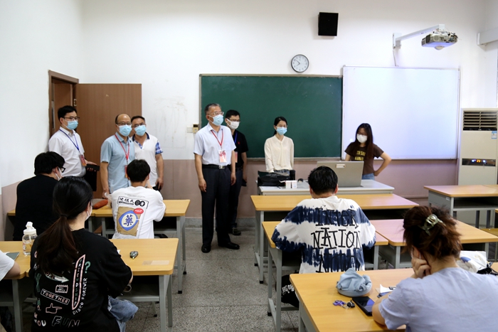 近日,根据学校相关通知精神,我校有序恢复小班(50人以内)理论课程线下教学。5月30日上午,校党委副书记、校长崔景贵,校党委常委、副校长贝绍轶,教务处处长王志华,教学质量监控与评估处处长刘晓杰一行巡查了理论课程的线下教学授课情况,及时掌握疫情防控的落实、了解线下教学秩序的恢复和师生课堂的教学状态,保障线下教学的顺利开展。