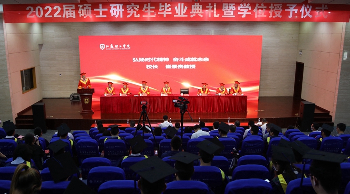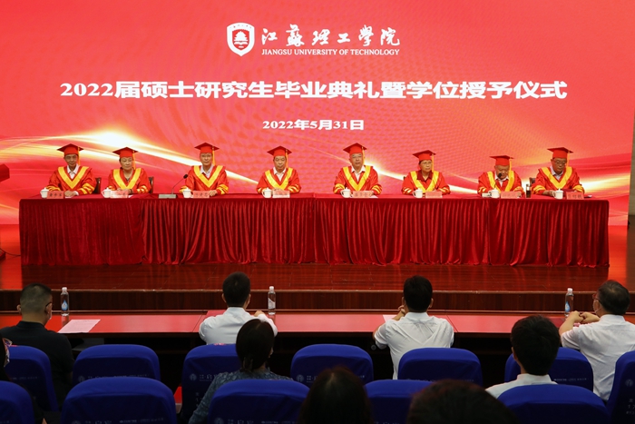5月31日上午,我校2022届硕士研究生毕业典礼暨学位授予仪式在图书馆北报告厅举行。校领导朱林生、崔景贵、汤建石、周兰珍、蒋心亚、谢忠秋、黄步军、贝绍轶,党办校办、学工处、财务处、后勤保障处、团委等部门领导,全体毕业研究生、研究生学校导师和企业导师代表,机械工程学院、电气信息工程学院、计算机工程学院、化学化工学院、资源与环境工程学院、汽车与交通工程学院、材料工程学院等相关负责人出席典礼。毕业典礼采用线上线下相结合的形式。副校长谢忠秋主持典礼。