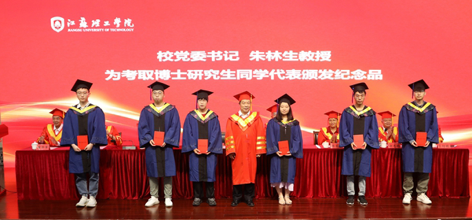 毕业典礼在导师寄语VCR中开场,在雄壮的国歌声中正式拉开序幕。典礼上,校党委副书记周兰珍宣读《关于授予包向男等130名学生工程硕士学位的决定》,校党委副书记汤建石宣读《关于表彰我校2022届优秀毕业研究生及优秀硕士学位论文的决定》。校领导为优秀毕业研究生、优秀硕士学位论文获得者代表颁奖。校党委书记朱林生为考取博士研究生代表颁发纪念品。校领导为硕士学位获得者拨穗并颁发学位证书。