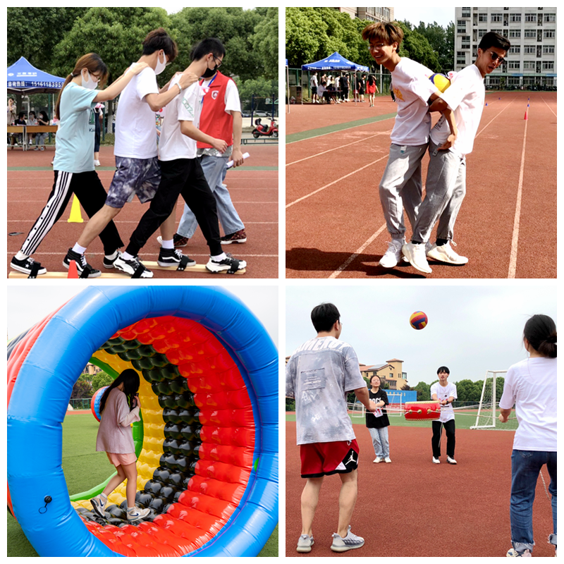趣味运动会设板鞋竞速、动感五环、袋鼠运球接力、同心协力、抛绣球等七个项目。为保证运动会顺利进行,主办方精心策划、广泛动员,对疫情防控、场地布置、活动规程及应急预案等都作了细致考虑和准备。运动会现场气氛热烈,运动员们为了同一个目标,精诚合作、奋力拼搏,欢呼声、加油声此起彼伏。