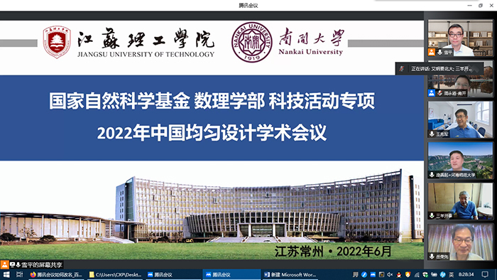 6月4日-5日,由国家自然科学基金委资助、中国数学会均匀设计分会主办、我校和南开大学共同承办的2022年中国均匀设计学术会议在线上举行。来自北京大学、南开大学、中国科学院等30余所高校、科研院所、企事业单位360余位专家、学者汇聚云端,开幕式由我校党委常委、副校长贝绍轶教授主持。