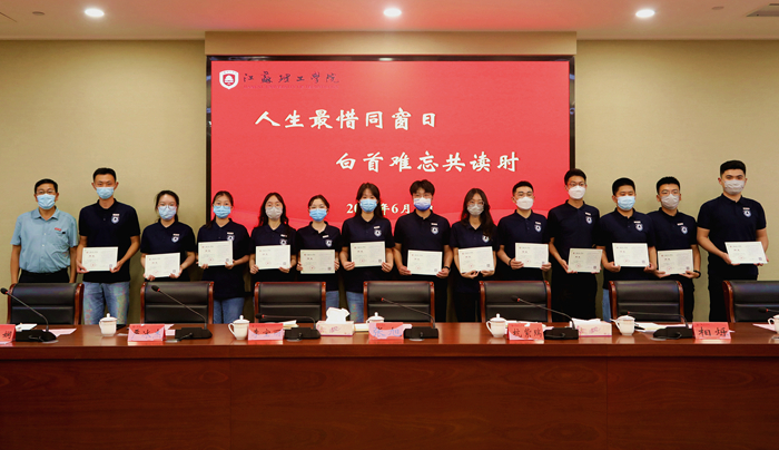 毕业生党员代表们畅所欲言,他们回顾了大学四年的成长历程,分享了自己在学习、工作、生活中的重要时刻以及成长感悟,表达了对母校党组织教育培养的感激之情。汽车学院相烁表示,踏上工作岗位后将保持终生学习的热情,勤奋努力扎实工作,将来报效祖国。商学院张旭即将成为一名公务员,他表示,大学四年成长收获颇多,也见证了母校的发展,将来要学在常州、用在常州,为学校争光,为常州添彩。数理学院陈奕如已成功考取教师编制,她表示,要学习我校老师一丝不苟的教学态度,努力成为一名优秀的人民教师。座谈会上,校友工作办公室主任郭耿玉向与会的毕业生党员颁发了校友联络员证书,希望大家积极参与校友活动,凝聚校友力量,助力校友工作。