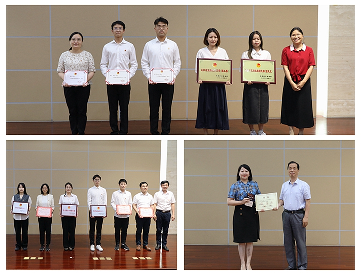会议第一阶段,陈晓宣读江苏省、常州市“两红两优”先进集体和个人名单以及常州市“十大杰青”提名奖名单,周兰珍、黄步军、基国林为获奖代表颁发奖牌和奖状。