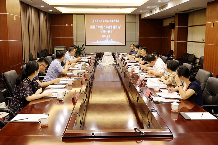 在黑牡丹集团党委委员、技术总监、职工董事邓建军同志第四次当选全国党代表之际,7月5日上午,常州市社科联2022年重大项目“黑牡丹集团‘邓建军科研组’研究与启示”专家论证会在城市名人国际大酒店举行。常州市社科联党组书记、主席蒋顺青,黑牡丹(集团)股份有限公司党群办主任席中豪、常州日报社主任记者马浩剑、常州城市名人国际大酒店董事长陈得、我校文化与旅游学院常如瑜教授等项目团队成员出席会议,文化与旅游学院党委书记张羽程主持专家论证会。