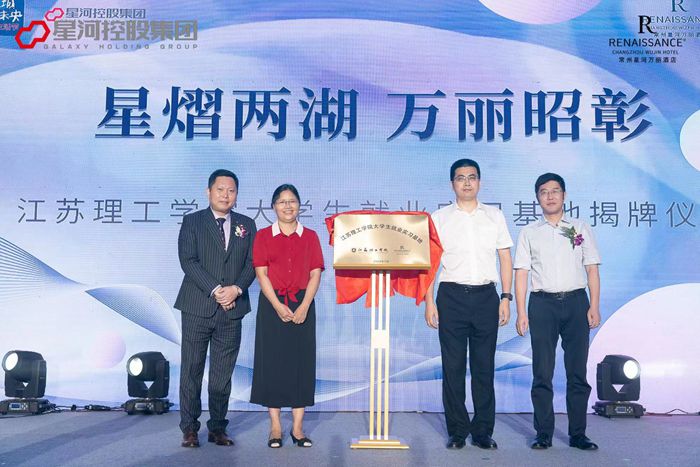 周兰珍、王华刚与星河地产集团副总裁章建波、常州星河万丽酒店总经理胡晓亮共同为“江苏理工学院大学生就业实习基地”揭牌。作为万豪国际在常州开启的首家万丽品牌酒店,常州星河万丽酒店由星河控股集团投资建造,位于西太湖揽月湾,总建筑面积约7.5万平方米,总投资近10亿元,建筑高度190.7米,是武进第一高楼。酒店拥有339间全湖景客房、3个餐厅、逾3000平米宴会空间,另有酒吧、休息酒廊、24小时恒温泳池、健身中心、儿童乐园、VR影院等休闲娱乐项目。酒店投运后,可进一步提高西太湖板块游客接待和高端商务接待能力,为“两湖”创新区建设添力。常州星河万丽酒店仅诚邀我校和南京师范大学作为大学生就业实习基地。