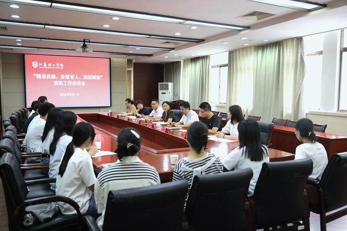 9月7日下午,我校在厚德楼220会议室召开“精准资助、多维育人、高效赋能”资助工作座谈会。校党委副书记周兰珍、相关职能部门领导、辅导员代表及学生代表参加会议。会议由学生工作处处长王振伟主持。