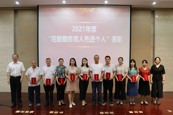 会上,对“2021年度后勤服务育人先进个人”进行了表彰,俞亚萍宣读了表彰文件,崔景贵、俞亚萍共同为获得表彰的先进个人颁发了证书,先进个人代表单春雨、熊佳秀、陈丽慧在会上交流发言。后勤保障处处长、后勤服务总公司总经理蒋益锋部署了新学期工作。后勤服务总公司发布了《2022年度“三创三建”服务育人活动实施方案》,向劳动教育实践课程首批讲师颁发聘书。