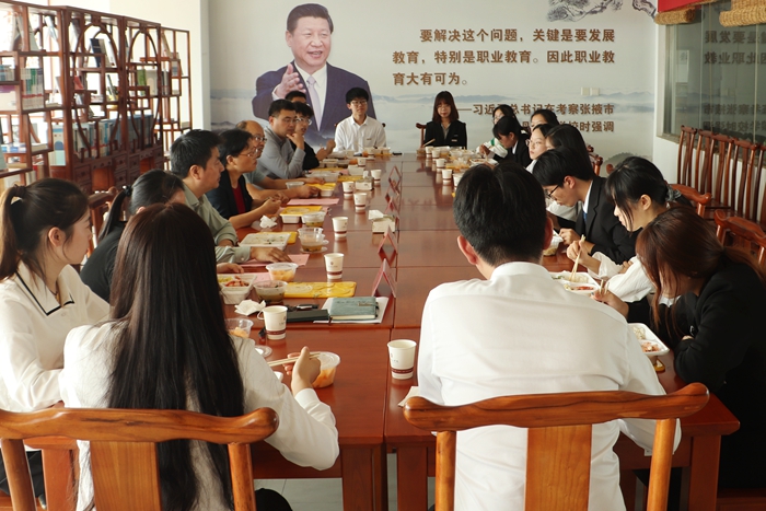 9月29日中午,我校在图书馆炎培书舍举办校领导与学生交流午餐会。校党委副书记周兰珍,学工处、教务处、后勤保障处、团委等相关职能部门负责人,与来自15个学院的学生代表共进午餐、交流互动。午餐会由学生工作处处长王振伟主持。