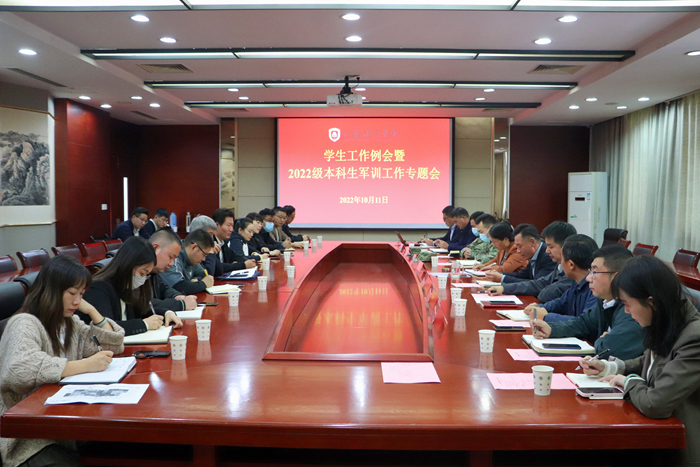 10月11日下午,我校在厚德楼220会议室召开学生工作例会暨新生军训工作专题会。校党委副书记、校军训工作领导小组组长周兰珍,军训团团长陈旭,各相关职能部门领导及校军训工作领导小组全体成员参加会议。会议由校党委人民武装部部长王振伟主持。