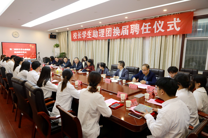 10月26日下午,我校在正德楼第二会议室举行校长学生助理团换届聘任仪式。校党委副书记、校长崔景贵,校党委副书记周兰珍,校长办公室、校团委有关领导,首届学生助理团代表及新一届学生助理团全体成员参加仪式。仪式由校团委副书记韩洁主持。
