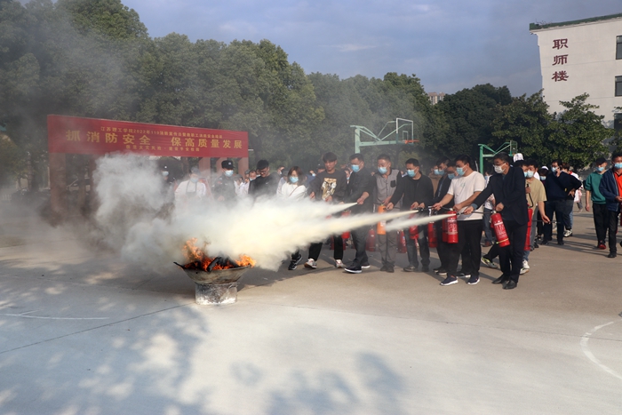 为进一步增强我校教职员工消防安全意识,提升消防安全技能,在第31个全国消防日之际,我校在西苑篮球场举办以“抓消防安全,保高质量发展”为主题的“11.9”消防宣传日暨重点岗位教职员工消防安全培训。参加本次培训的有来自后勤一线的宿舍管理人员、食堂工作人员,商户承租人员、实验室管理人员以及今年新入职的教职工。副校长谢忠秋赴活动现场指导工作。