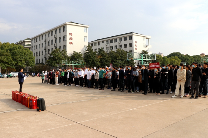 谢忠秋在讲话中强调,高校是人员密集场所,每个人都要树立防火观念,清除火灾隐患,做到“防”先于“消”,“防”大于“消”;工作中要随时紧绷防火这根弦,守住消防安全这条底线,筑牢校园消防安全防火墙,拧紧高质量发展安全阀。真正做到“曲突徙薪,防患未然”,共建和谐平安校园,维护学校安全稳定。