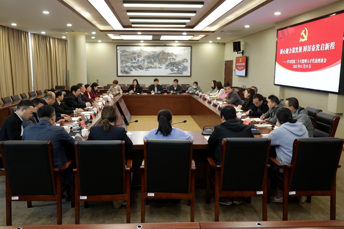 11月15日下午,我校在图书馆四楼会议室召开以“凝心聚力谋发展 踔厉奋发启新程”为主题的学习党的二十大精神人才代表座谈会。校党委书记朱林生,校党委副书记、校长崔景贵,党委组织部、人事处、教务处、科学技术处、社会科学处等职能部门负责人,部分人才代表及人事处全体工作人员参加会议。会议由崔景贵主持。