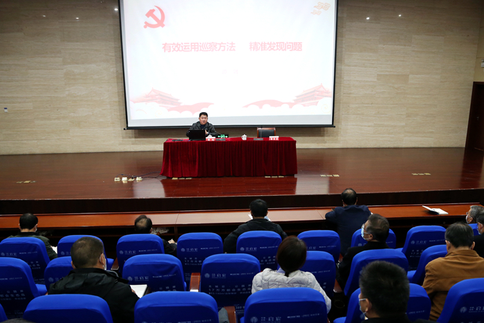 会上,常州市科教城纪工委副书记谭剑受邀作题为《有效运用巡察方法 精准发现问题》的专题辅导报告。他详细介绍了巡察工作的五个发展历程。以有效运用巡察方法为主线,系统阐释了巡察工作的环节、步骤和重点工作。以是否正确把握“四个落实”为落脚点,对巡察工作中需要把握的重点进行了深入分析和解读。报告层次清晰,既有理论高度,又有实践指导,对提升我校巡察干部业务能力水平具有很强的指导作用。