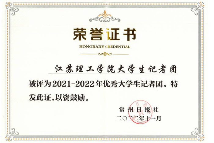 会上对2021-2022表现突出的高校宣传部门、通讯员和学生记者团体予以表彰。我校荣膺2021-2022年“宣传工作先进集体”、“优秀大学生记者团”两项殊荣。
