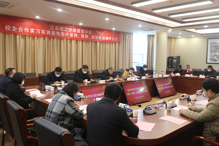 为进一步促进教育链、人才链与产业链、创新链有机衔接,增强教育服务产业高质量发展的能力,12月14日下午,我校管理学院在图书馆四楼会议室举行财务会计系第一批校企合作实习实训基地集中签约、授牌、兼职教授聘任仪式。我校副校长兼管理学院院长谢忠秋,常州市财政局会计处处长朱敏涵,校企合作企业代表,管理学院相关领导及教师代表参加会议。会议由管理学院副院长李秀丽主持。