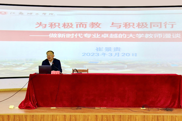 开班典礼结束后,校党委书记崔景贵教授为参训学员作《为积极而教 与积极同行——做新时代专业卓越的大学教师漫谈》的专题讲座。