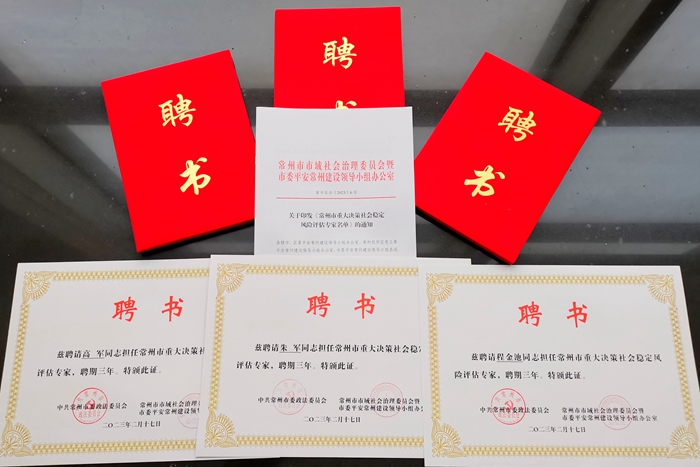 常州市重大决策社会稳定风险评估专家分为学术类专家、法律法学类专家、行业类专家、信访稳定类专家、社会科学类专家等五类,主要职责是参与全市范围内重大决策事项的论证和社会稳定风险评估报告评审工作、围绕稳评决策事项提供专业咨询指导、为市委市政府决策和重大项目建设实施提供政策法规等方面咨询参考等。我校3位专家的入选彰显了我校在重大决策社会稳定风险评估方面的影响力和社会服务能力。