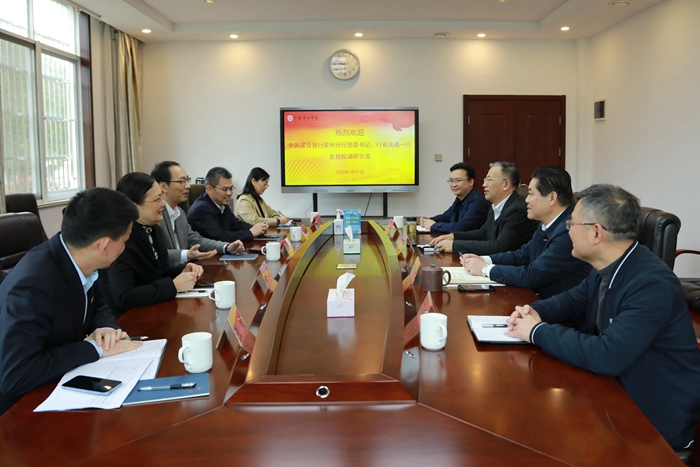 3月31日上午,中国建设银行常州分行党委书记、行长吴迪,党委委员、副行长蒋红星,机构业务部、钟楼支行等相关部门负责人一行来校调研交流。会议于正德楼第一会议室举行,校党委书记崔景贵,校党委副书记、校长戴国洪出席会议,党办校办、财务处部门负责人参加会议。