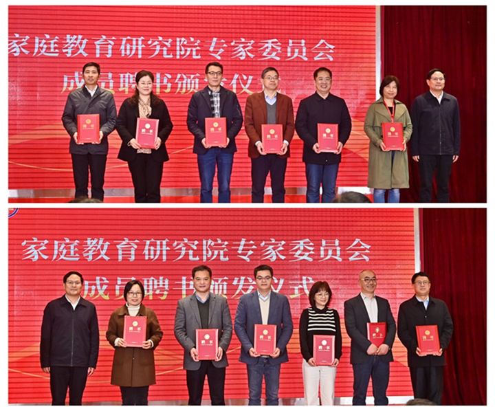 李德方从机构性质与主要职能、组织架构及职责、运行机制、年度计划与发展目标等三个方面,介绍家庭教育研究院的建设运行实施方案。梅向东、董彩凤、张珍代表常州市教育局、常州市妇联、江苏理工学院教育学院签订共建协议。根据协议,三方将会通力协作,打造家庭教育高端智库、开展家庭教育理论和实践研究、统筹家庭教育资源、推动家庭教育活动开展、承担家庭教育指导员的培育,推进常州市家庭教育发展迈上新台阶。徐子敏和陈志良共同为研究院揭牌,汪晓东为研究院首批专家委员会成员代表颁发聘书。