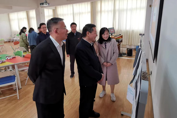 4月7日上午,江苏省委教育工委副书记、省教育厅党组成员徐子敏一行调研我校“一站式”学生社区(厚德社区)。校党委书记崔景贵,党委副书记周兰珍,副校长蒋心亚、俞亚萍等陪同参观。校学工处处长王振伟全程讲解。