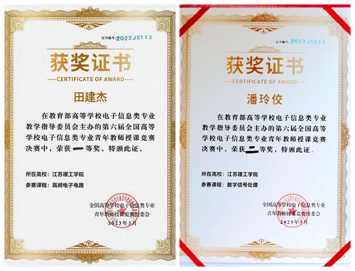 近日,第六届全国高等学校电子信息类专业青年教师授课竞赛全国决赛在重庆邮电大学举行。电气信息工程学院田建杰老师获得全国一等奖、潘玲佼老师获得全国二等奖,实现了我校在该赛事上的新突破,取得了同类院校中最佳成绩。