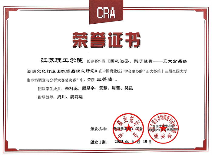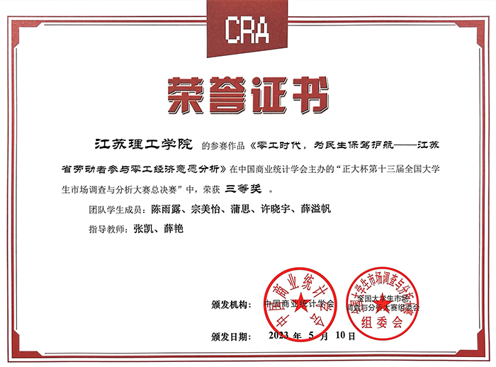近日,“正大杯”第十三届全国大学生市场调查与分析大赛(江苏赛区)在南京闭幕。由我校经济学院张凯、周川、张雪伍等教师指导的参赛队均喜获全国三等奖,在获奖数量和质量上均有较大突破。