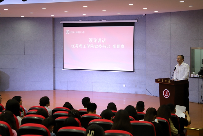 崔景贵在会上讲话。他代表学校党委、行政感谢广大校友对母校、教育学院建设与发展的关心支持,肯定本次校友返校日活动的成功举办,并向获得奖学金表彰奖励的同学们表示祝贺。崔景贵简要回顾教育学院的创建历程,希望教育学院全面总结建院二十年的办学经验,树牢“学院办大学”的新理念,把握“争当表率、争做示范、走在前列”的总要求,接续弘扬“敢为、敢闯、敢干、敢首创”的时代精神,提高站位、争先进位,奋发有为、积极作为,聚力开创追求卓越、更加辉煌的美好未来。崔景贵深情寄语教育学院师生,一要立己达人知行合一,立志做培育学生品格品行品味的“大先生”,努力做学为人师、行为世范的“引路人”,真做富有人文精神、促进人格和谐、服务人生幸福和助力人民满意的好教育;二要以学为本为学而教,积极推进大学教学创新变革研究,用心读懂学生学情、探究学法学问、优化学力学风,全面提高自主培养专业人才质量,奋力推动教育学院事业高质量发展迈上新台阶、谱写新篇章。(图/文 教育学院 吴心悦、戴铭轩、王云白;审核/张珍;编辑/黄妤)