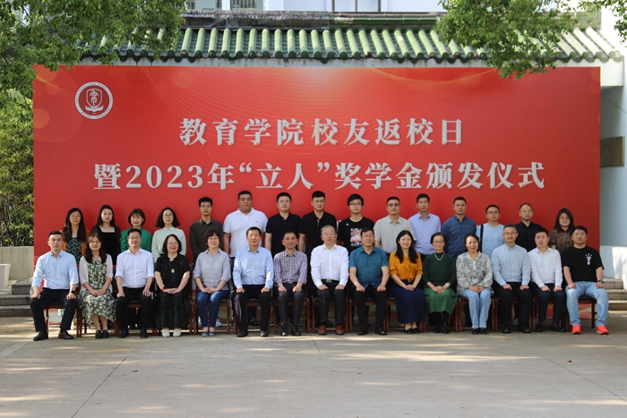 活动在全国各地校友们热情洋溢的远程祝福视频中拉开序幕,教育学院院长李德方代表学院致辞。郭耿玉和教育学院校友分会副秘书长朱东阳为2023年10名“立人”奖学金获得者颁奖。教育学院“立人”奖学金自2021年设立以来,坚定“立德树人 自立成人 立志育人”理念,在社会各界的关心支持下,充分发挥校友优势,全力提升筹资力度。同时加强对受奖学生后续跟踪管理,确保成效显著,示范标杆。