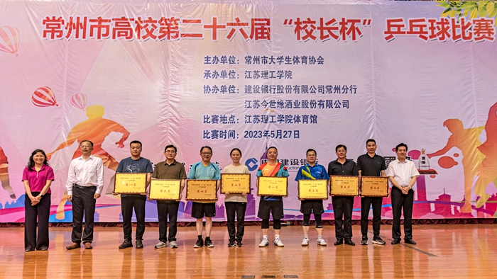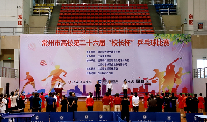 为全面推进在常高校体育工作,加强校际间交流,5月27日,由常州市大学生体育协会主办、我校承办的常州市高校第二十六届“校长杯”乒乓球比赛在校体育馆顺利举行,来自全市10所高校代表队50多位参赛队员以球会友,共享国球魅力。校党委书记崔景贵,党委副书记、校长戴国洪出席开幕式,开幕式由党委副书记周兰珍主持。