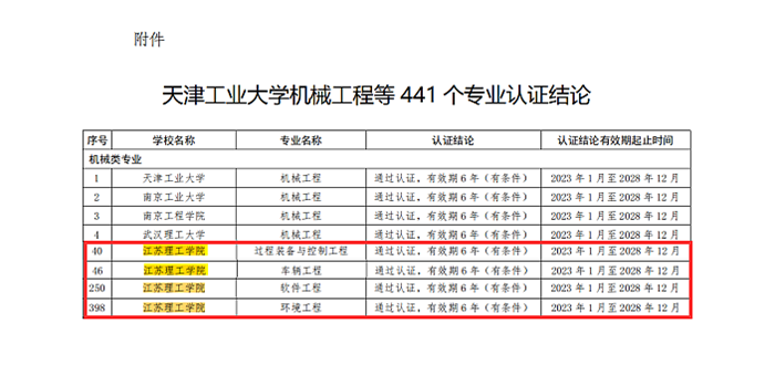 近日,中国工程教育专业认证协会公布2022年全国工程教育专业认证结论。我校车辆工程、过程装备与控制工程、软件工程、环境工程4个专业正式通过工程教育专业认证,认证有效期为6年(有条件),自2023年1月至2028年12月。
