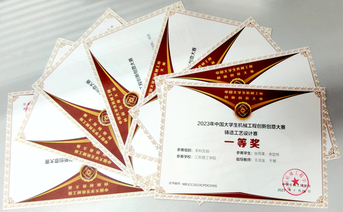 本次大赛吸引来自全国107所高校4064名学生报名,共计1201份作品参赛。我校共派出11支参赛队伍,经校内初赛、全国决赛初评,由刘欣露、周沁园、高思宇、张雨柔、余定琦、李思林、张敏等同学组成的3支队伍成功进入全国决赛。参赛学生刻苦认真,拼搏进取,在决赛终评答辩及知识竞赛等环节中展现出扎实的铸造专业知识,最终获得奖项8项,其中刘欣露、周沁园、高思宇团队以总分第一的成绩获得铸钢件组一等奖。我校通过积极组织学生参赛,旨在进一步提高大学生工程实践能力和创新创业能力,提升金属材料工程专业人才培养质量。