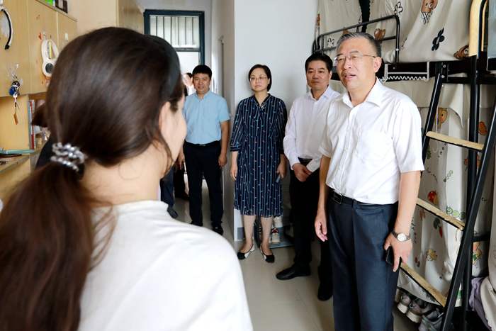 新学期伊始,校党委书记崔景贵,校党委副书记、校长戴国洪,校党委常委、副校长俞亚萍在党办、校办、学生工作处、后勤保障处等部门领导的陪同下,深入学生宿舍,走访慰问返校学生。