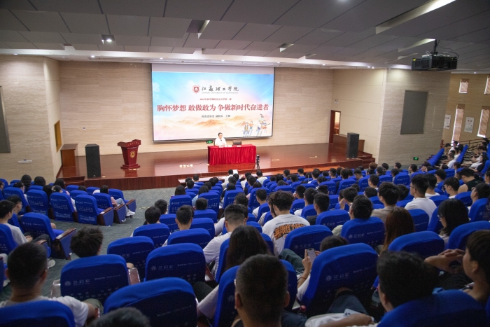 校党委常委、副校长王俊以《胸怀梦想,敢做敢为,争做新时代奋进者》为题,为442名研究生新生讲授“开学第一课”。他代表学校热烈欢迎研究生新同学,并结合学习贯彻习近平新时代中国特色社会主义思想主题教育,引导同学们正确认识教育、科技、人才三者的关系。王俊强调了研究生的目标和使命。他提到,研究生,重在“研究”二字,大家作为高层次创新性人才,要懂学问,会做学问。他勉励同学们要争做学人,拥有终身学习的主动意识和本领。科学研究需要系统性,追求真理和获得真知是学者的初心和使命。要心怀理想,拥抱星辰大海。他引用“常州三杰”的故事,强调青年应该有国家和民族的大局观念,鼓励同学们要清正精神、端正思想。要脚踏实地,砥砺奋斗,方得始终。始终为国家“捧着一颗心来”,将青春“小我”融入国家“大我”,将爱国之志燃炽于胸,将拳拳爱国之志镌刻于心。研究生同学作为科研活动的重要力量、未来科技创新的战略人才,在未来的三年中,要认真做学术、努力做科研,和学校一起努力,在全面推进中国式现代化江苏新实践中书写好江理工人的新答卷,用科技创新实现中华民族的伟大复兴。