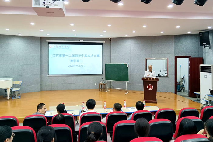 为全力做好江苏省第十二届师范生教学基本功大赛赛前准备工作,助力我校选手赛出风采赛出水平,9月20日下午,我校在47-1阶师范生音乐技能演播厅举办师范生教学基本功大赛赛前展示。副校长王志华,教务处、各相关学院负责人、指导老师及参赛选手参加了本次活动。活动由教务处副处长胡冰主持。