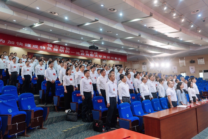 戴国洪强调,今后五年是学校全面推进特色鲜明的一流应用型大学建设的关键时期,是学校卓越发展期的关键五年。我们必须牢记全体党员和师生员工的重托,凝聚大家的智慧和力量,以永不懈怠的精神状态、久久为功的不懈努力,勇毅前行、实干担当,将大会提出的各项目标任务落细落小落地落实。一要深入学习贯彻大会精神,凝聚全校奋进力量。全校各级党组织要行动起来,把学习贯彻学校第三次党代会精神作为一项重要的政治任务抓紧抓好。要按照大会确定的发展思路、奋斗目标、发展战略、发展举措,把党员干部、广大师生的思想认识和行动统一到大会的决策部署上来,让大会精神深入到每一位党员心中、深入每一位师生心中,凝聚起全校师生共赴新征程、展现新作为的奋进力量。二要狠抓目标落地落实,推进工作取得见效。各单位、各部门要根据本次党代会提出的目标,优化顶层设计,细化工作方案,强化工作落实。要明确各项任务的时间表、路线图和责任人,把“蓝图”转变为“施工图”,真抓实干,稳步推进,使每一位党员干部心中有数、手中有活、肩上有责,确保会议精神落到实处、见到实效,确保各项目标任务不折不扣、顺利实现。三要发挥引领带头作用,强化干部担当作为。新一届党委将肩负起全体党员和师生员工的重托,全面加强党的领导,提高党的建设质量,推进全面从严治党不断向纵深发展。各单位党组织和各位代表要将大会精神带回到所在单位和各自的工作岗位,以高度的责任感和使命感,形成更加广泛的发展共识,凝聚更加强大的发展合力。全体党员要充分发挥先锋模范作用,不忘初心、牢记使命,带动全校师生员工继续发扬“惟实励新,追求卓越”的大学精神,凝心聚力,攻坚克难,为实现党代会提出的各项任务而勇挑重担、争做贡献。戴国洪要求全校各级党组织、全体党员及师生员工更加紧密地团结在以习近平同志为核心的党中央周围,高举中国特色社会主义伟大旗帜,坚持把立德树人作为根本任务,以更高的站位、更宽的视野、更大的格局、更强的信心、更大的担当,开拓进取,创新实干,为加快建成特色鲜明的一流应用型大学团结奋斗!