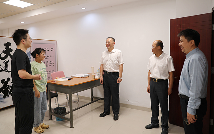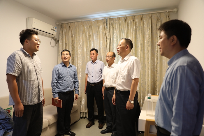 9月30日下午,校党委书记崔景贵,校党委常委、副校长王志华带领党办校办、学工处、保卫处、信息中心等部门负责人,深入教室实验室、总监控室、总值班室、后勤保障处、保卫处等现场一线,看望慰问假期值班工作人员和在校科研教师、考研学生,督查检查校园后勤保障、安全稳定工作。