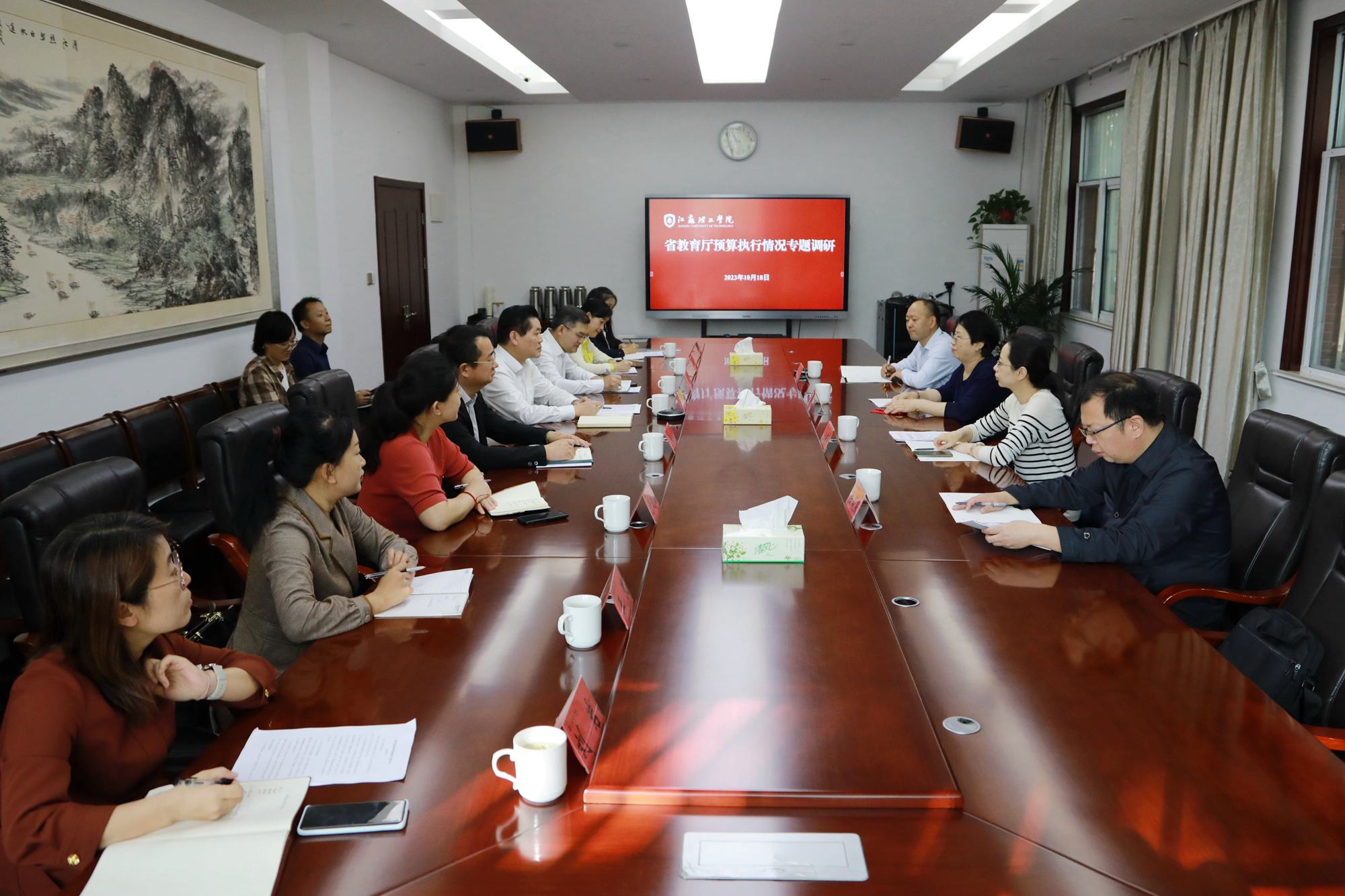 10月18日上午,省教育厅预算执行情况专题调研会在我校召开。调研组成员有省教育厅二级巡视员周亚君、省教育厅财务与资产管理处副处长潘莉娜、南京邮电大学财务处处长张进、盐城师范学院财务处处长陆咸良,我校与在常部分高校财务处处长参加了调研会,会议由校党委副书记、校长戴国洪主持。