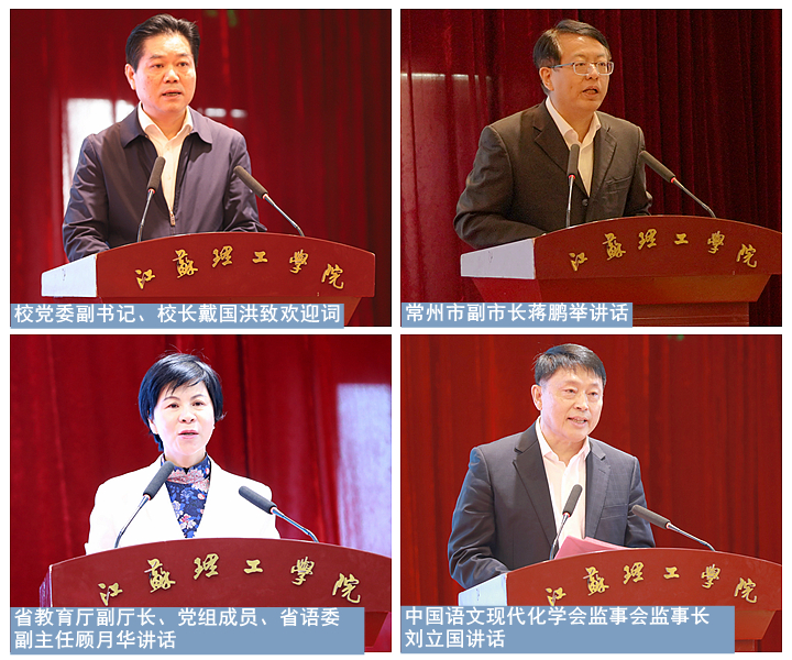 中国语文现代化学会会长姚喜双作主旨报告,中国语文现代化学会监事会监事长刘立国、副秘书长田列朋,省教育厅副厅长、党组成员、省语委副主任顾月华,常州市委常委、宣传部部长陈志良,常州市副市长蒋鹏举,省教育厅语言文字与教材工作处处长、省语委办主任沈晓冬,以及市文广旅局、常州市晋陵集团、市教育局、常州广播电视台、常州日报社等单位领导出席开幕式。