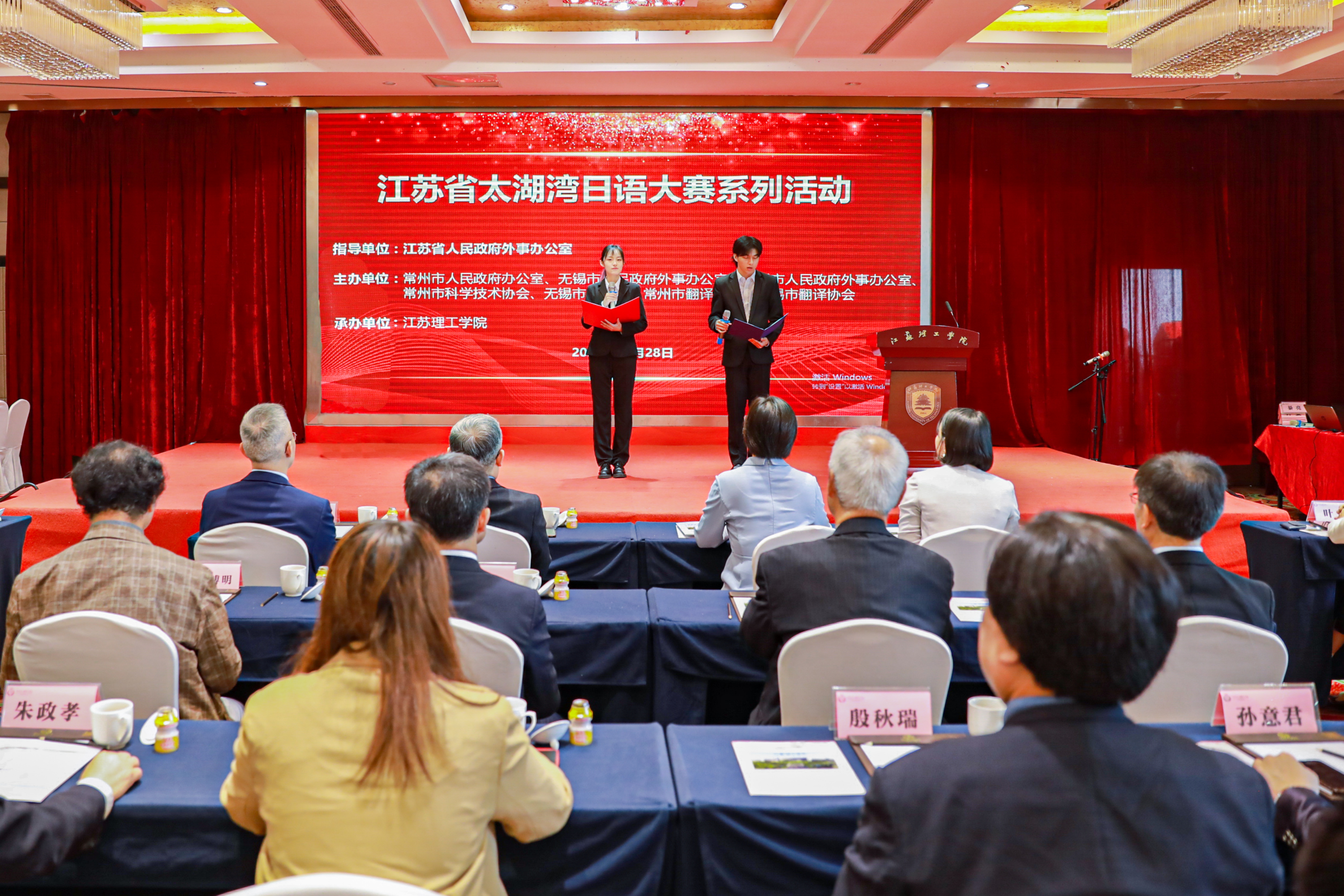 10月28日,2023年江苏省太湖湾日语大赛决赛于江苏理工学院成功举办。大赛由江苏省人民政府外事办公室指导,由常州市人民政府外事办公室、无锡市人民政府外事办公室、苏州市人民政府外事办公室主办,旨在响应长三角区域一体化发展战略,加强苏锡常三地日语界的交流与往来,促进三地日语人才培养,带动科技创新和经济发展。本年度赛事由江苏理工学院承办,包括第24届中日文化及日语教学交流会、第4届日语教学(微课)大赛以及第17届太湖湾日语演讲比赛三项内容,共有来自25所院校及7个社会组织的54名选手参加日语演讲比赛,来自9所院校的学生参加才艺表演大赛,18位日语专业教师参加日语教学(微课)大赛。